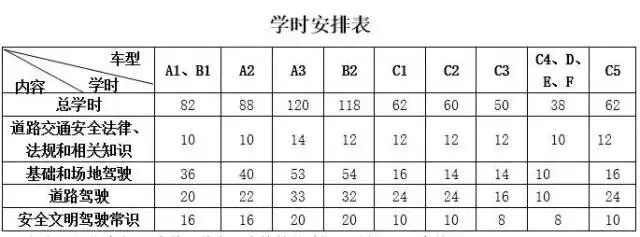 新《大纲》对部分车型的培训学时做了调整。其中,C1证和C2证的总学时分别为62学时、60学时。比目前施行的要求少了10多个学时。