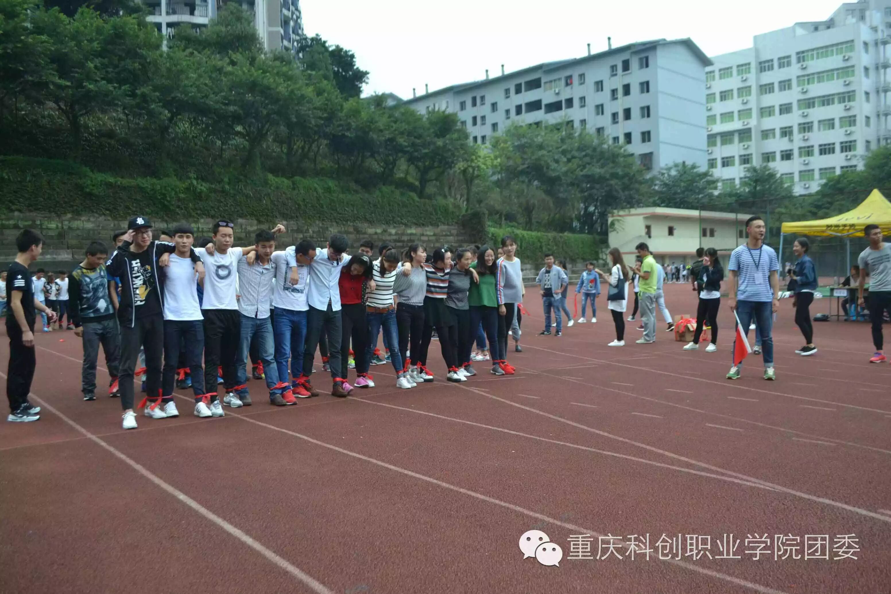 运动让人健康,让人快乐,为了提高团队精神和集体精神。由校团委学生会组织开展的阳光伙伴“绑腿跑”第一轮初赛于10月21日12:30在综合塑胶运动场举行。15支参赛队伍分别来自工商管理学院、建筑工程学院、汽车工程学院、信息与机电工程学院。
