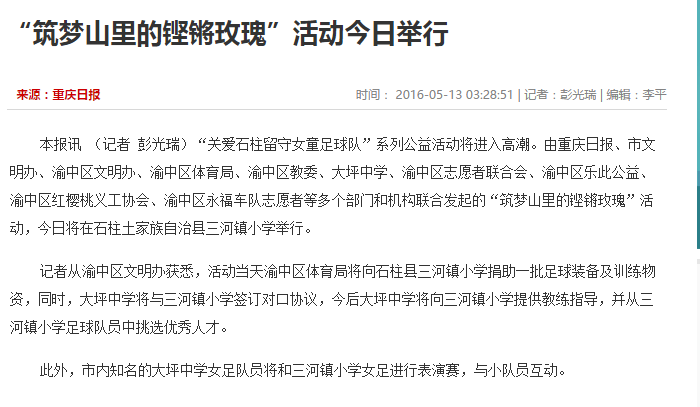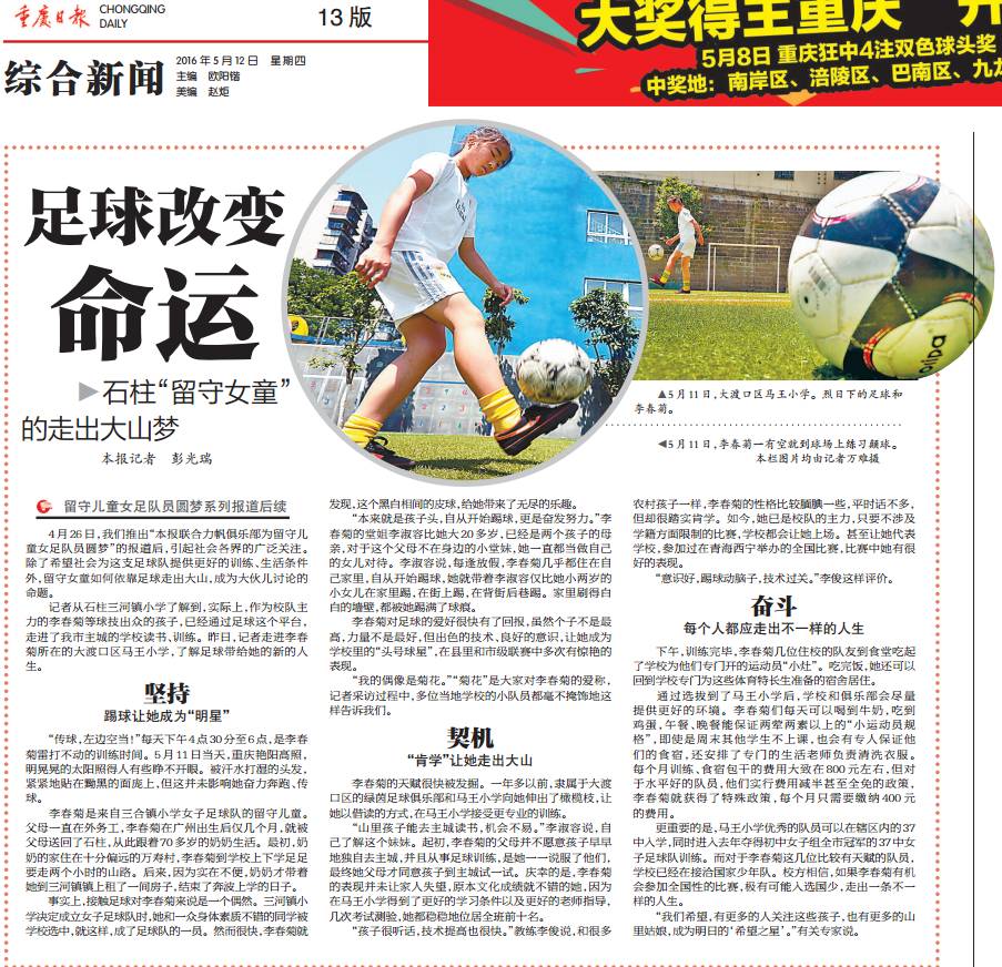 留守女童足球队的夺冠,引起媒体广泛关注:新华每日电讯、凤凰网、华龙网等国内、市内主要媒体纷纷大篇幅报道。留守女童足球队及队员们的生存状况,更是让人唏嘘。