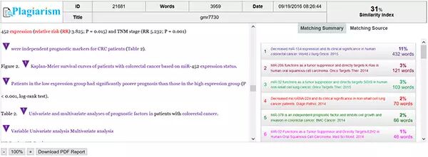 PlagiarismWatch网站在报告中写道:只有一个可能会导致出现上述情况,这本杂志是一本交钱就发的杂志,没有审稿过程、没有启用查重软件、编辑水平太差。网站工作人员将GMR7730发表的这本杂志同一期所有文章均用艾普蕾英文软件查重系统查了一遍,不可思议的事情出现了,这一期很多中国作者文章均出现了图表的一致,这简直是一本专门为中国学者开设的抢钱杂志。