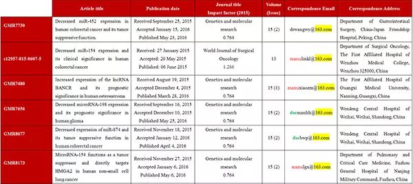 毫无疑问,根据这些查重比对结果,这篇文章GMR7730是一篇抄袭文章。但是为什么这么多不同SCI杂志的文章都有这个一样的图3呢?是不是所有的这些文章均是中国作者呢?有没有可能这些中国作者的文章是互相抄袭的呢?