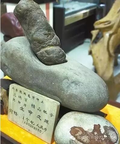 原来,这三块石头是重庆大河工艺老板赵毅收藏的,组合起来的名字为“生命之源”,其中两件酷似人体两性器官,而另外一块石头有着胎儿的图像。