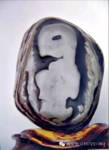 于是,他便将它们拿到工艺店中展示,无意中又把一个胎儿图案石放在一起,感觉极为般配。