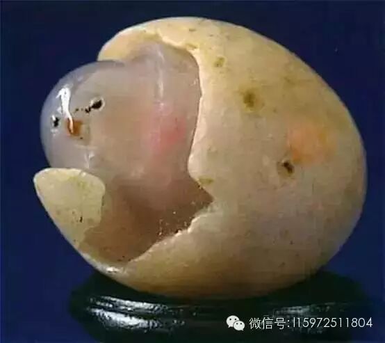 现收藏于北京朝阳区人民政府,小鸡出壳为天然玛瑙奇石。仿佛蛋壳破裂,一只色泽淡黄的毛茸茸小鸡伸头欲出,石质滋润、神态逼真。