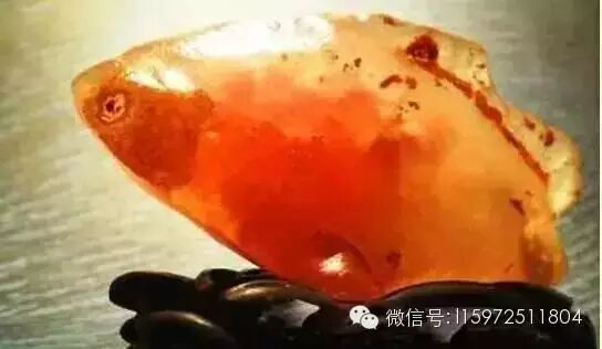 内包血色水胆,通体晶莹水润,鱼眼鱼鳍清晰可见。