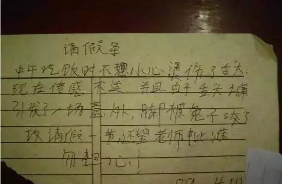 评语:我有点理不清头绪了......所以你请假跟你舌头被烫了有什么关系?