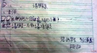 请假条:老师,我的心脏病又犯了,我想请假一万年,请准假。