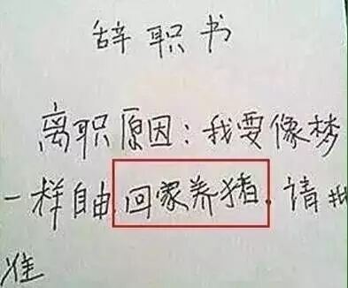 离职原因:我要像梦一样自由,回家养猪,请批准。