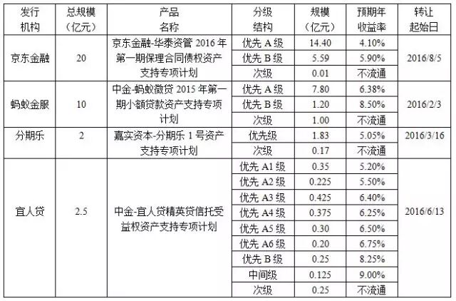 表1.1 互联网金融平台资产证券化部分产品发行概况