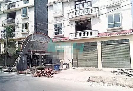 该网友还发布了多张图片,图片显示,在一栋约4层高的楼房前出现了一个类似坟墓的东西,它位于楼房前的院坝里,高约2米,与楼房的距离不超过1米,两端还贴着黑色对联。