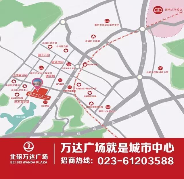 作为万达集团第192座、第5座落户重庆的万达广场,北碚万达旨在打造成为北碚区首座全业态一站式时尚家庭型购物中心,集购物、休闲、娱乐、餐饮、儿童业态于一身。北碚万达广场的建成,将改写北碚经济发展与商圈建设新格局,开启北碚购物休闲娱乐新篇章。