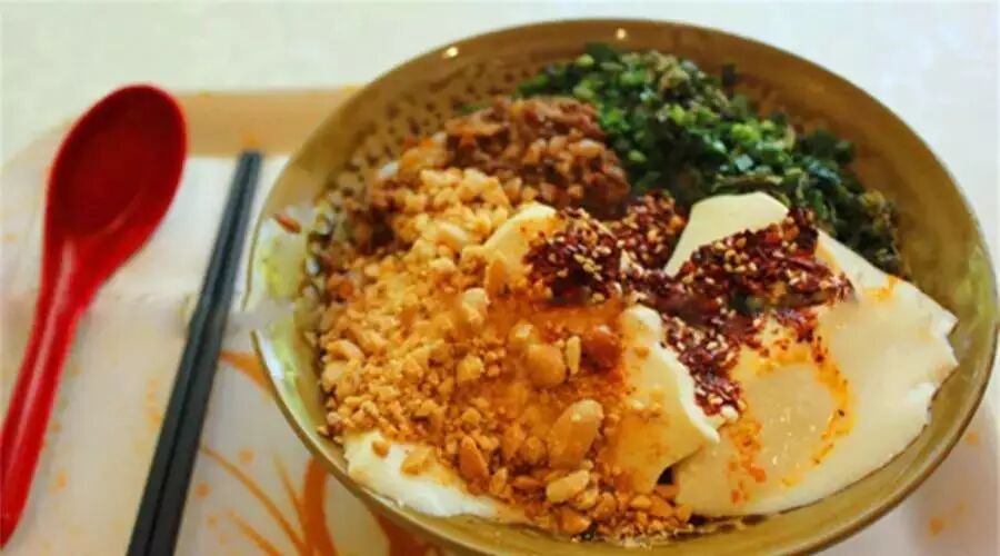 店面毫不起眼,但一到饭点,比起周围生意不景气的餐馆,它便显得格外抢眼!其豆花鲜嫩、佐料香辣、价钱便宜,安逸到板!
