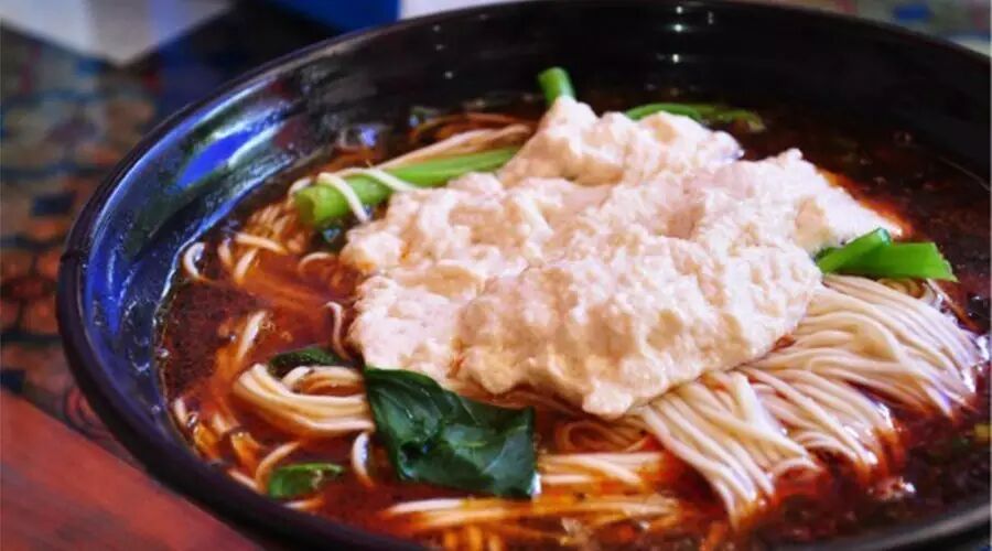 在正宗的重庆小面上盖一层白白嫩嫩的豆花,再浇一层酱,一碗面两种感受,超级美味!温馨提示,吃的时候要从中间把面挑出来吃哟,不然先吃完豆花面会干掉的!