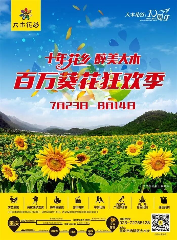 7月23日至8月14日,百万葵花狂欢季将在涪陵区大木乡、大木花谷及林下花园景区举办,你或许可以亲自去体验一把。