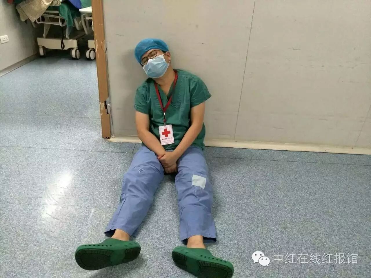 2016年7月13日晚上,重庆某医院手术室的更衣间,一位男医生身着工作服,戴着口罩,疲惫地坐在地上,靠墙小憩。这一幕被同事用手机拍下来,配上一段文字——“捐献协调员这个工作有多少人能够接受?而他们的苦又有多少人能够理解?这一天,他都没时间吃饭,累趴在手术室……”随后将图文发送到朋友圈。