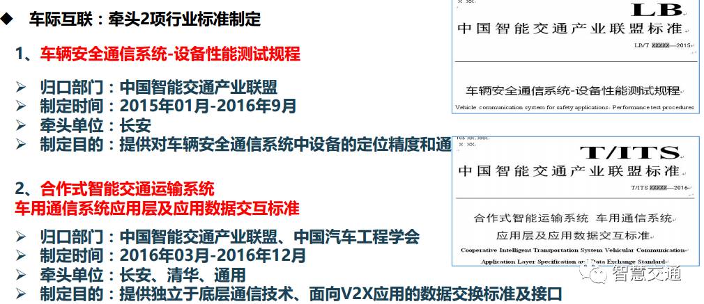 目前长安的研发计划是在未来三年,V2X应用方面,每半年开发一代原型样车,2018年在第6代原型达到可量产状态,并与美国同期技术水平相当。长安汽车牵头制定了一些相关的标准,车辆安全通信系统-设备性能测试规程以及合作式智能交通运输系统车用通信系统应用层及应用数据交互标准。