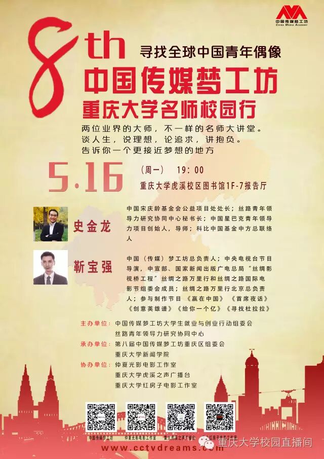 是的没错,想必很多重庆的小伙伴们已经了解了这个惊喜——第八届传媒梦工坊在重庆首秀啦!此事件意义重大应该不亚于奥运会开到自家门口了吧各位?