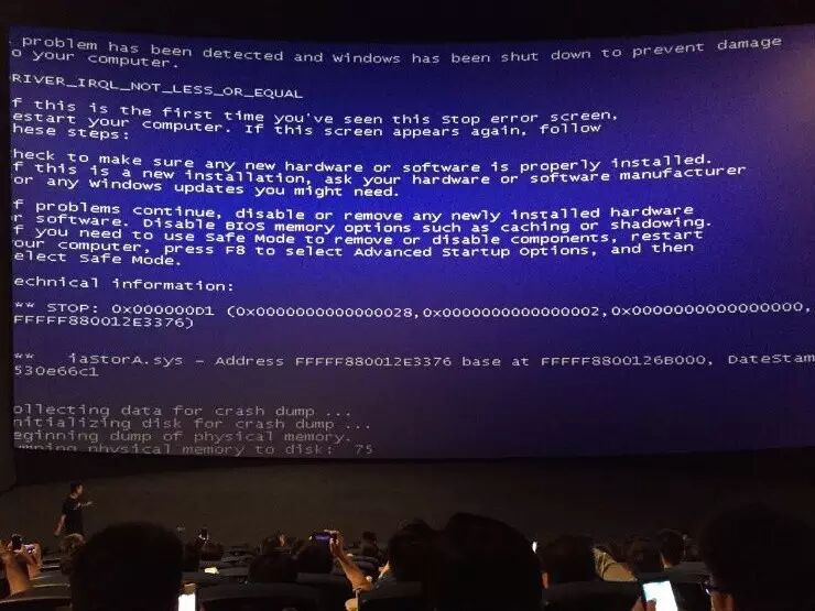 不知道哪家影院在放片的时候居然蓝屏了,蓝屏了!