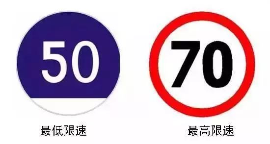圆圈内涂有颜色,但下方还有一截白底,表示最低限速标志,而最高限速一般都是白底黑字。