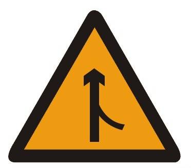注意合流标志,表示警告车辆驾驶员注意前方有车辆汇入车道。