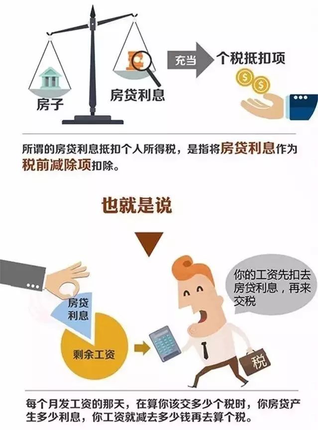 通俗点说,也就是会计每个月在做工资的时候,在算你交多少个税时,会把你的工资先减去你的房贷利息后再计算你的个税!