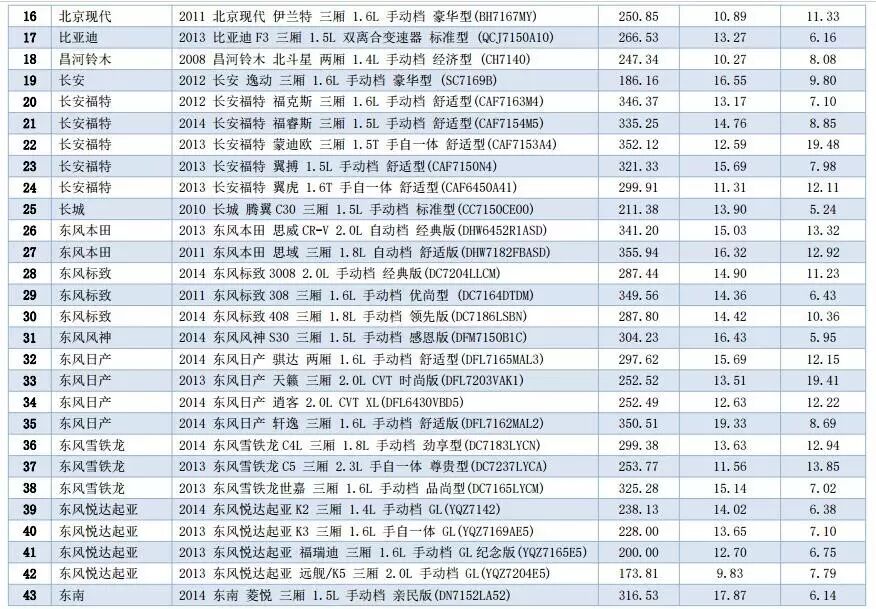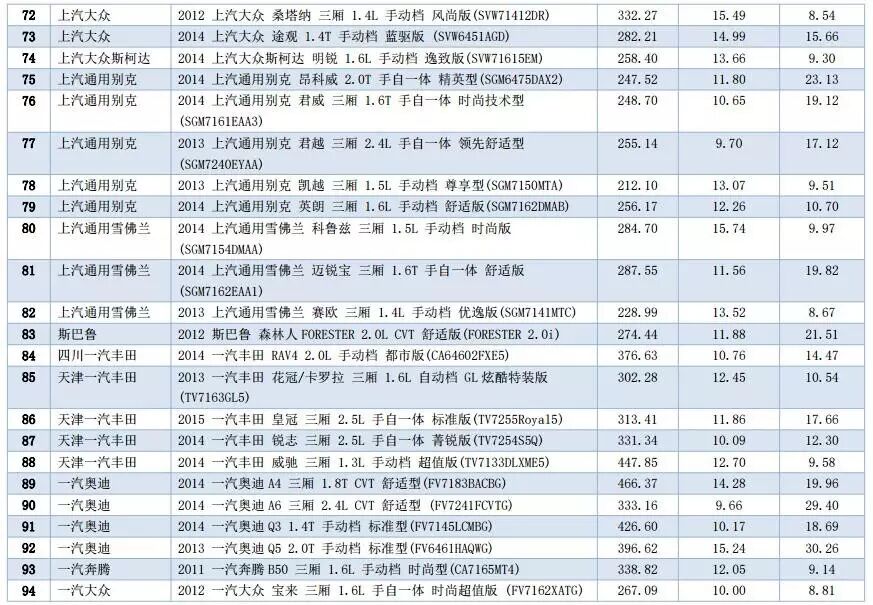 了解上面这4个问题,接下来,我们就可以来看一看市面上100款常见车型的用车成本参考(点击相关表格,可放大了看):