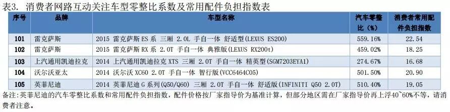对于广大车主来说,汽车零整比、消费者常用配件负担指数、消费者养护负担指数,不仅直接关系到车主的修车成本,还与车险保费直接挂钩,即使是同一价位的车,汽车零整比100指数越高的车型,车险保费越贵。