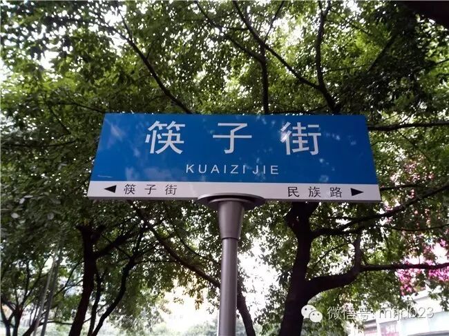 筷子街街名的由来之一:据说,当年山城的老百姓在西湖池边吃饭,有人不小心将筷子掉进了池水中,筷子竟然一下子就沉到了池底。人们非常好奇,按照常理,筷子是用竹木做的,应该能浮起来。受好奇心驱使,他们故意把筷子再次丢进池中,可是,无论尝试多少次,筷子都会沉入池底,而将同样的筷子丢进其他的水池,筷子却会浮起来,可见这西湖池不同寻常。为了纪念这眼神奇的池水,人们就把池边的这条小街取名为筷子街。