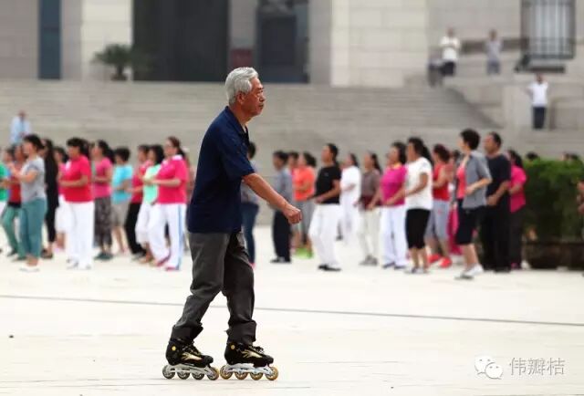 ▼延安时期,陕北汇聚了当时中国最有朝气的人,如今,这里的人们依旧充满活力。一头银发,也不能阻挡老大爷轮滑的步伐。