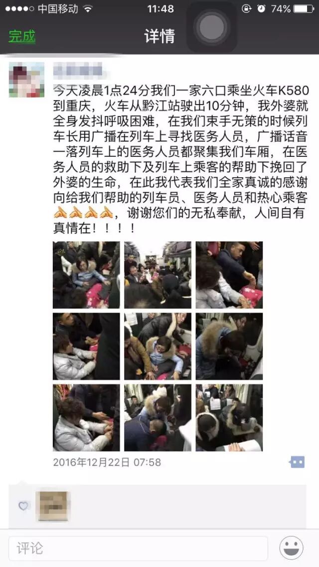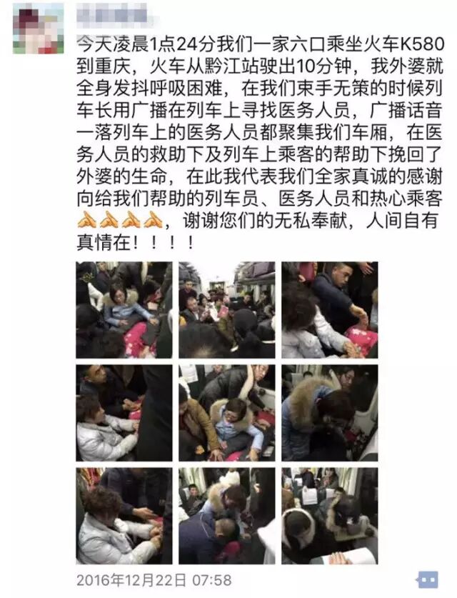 要不是列车长、医护人员、和热心乘客伸出援手,后果不堪设想。真的非常感谢大家的帮助。
