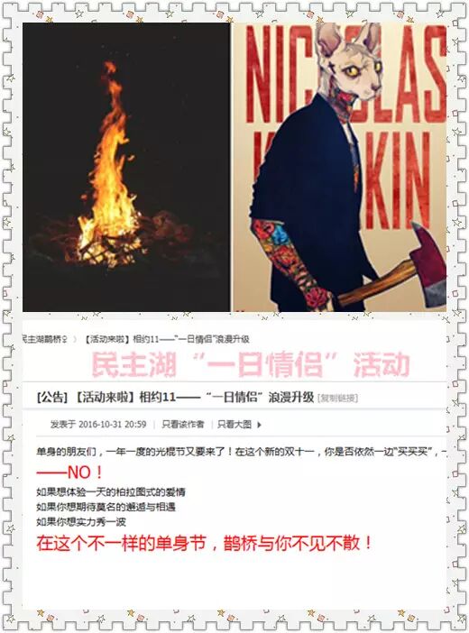 如果你参加了民主湖一日情侣的活动的话,也可以趁双十一和妹子出去吃吃饭,买买东西啥的。