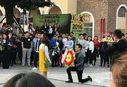 重庆的一名男子在大学城的街上当众向一位女孩求婚!