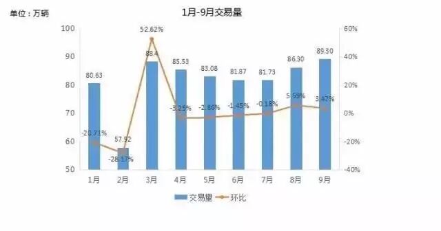 前三季度累计交易金额达到了4241.08亿元,二手车市场整体在2016年年初以来,从7月份之后的运营状态,体现了继续回暖的征兆。未来的四季度将给二手车市场带来更多的贡献,这种贡献会推动二手车市场在今年能够跨入千万辆年度交易整体的规模。