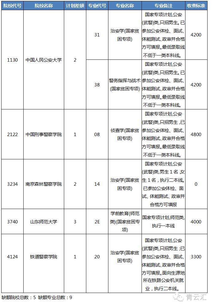 重庆2016普通文理类贫困定向本科缺额计划表公布!