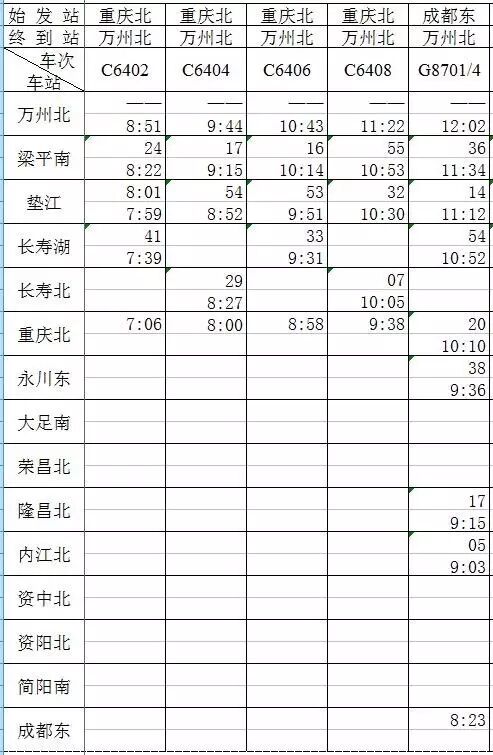 小编了解到,重庆北至万州北动车全程二等座票价98元、一等座157元。