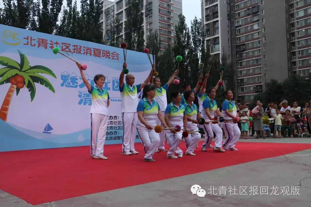 7月17日,由北青社区报回龙观分社主办,北京诚智慧中物业管理有限公司协办的消夏晚会准时在东亚上北小区的篮球场举行。听到音乐的响动,不少居民就开始打听围观,五点左右的时候来自各个社区的150多名演员陆续到场。