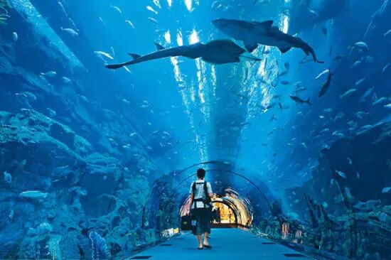 公园里还将拥有一条观赏角度达到220度的立体海底隧道。在隧道里看海洋生物,很立体也很逼真。
