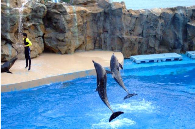 在公园里,可以亲自喂食水母,360度欣赏美轮美奂的珊瑚群,看鲨鱼巡游,海豚表演,体验极地酷寒,甚至还能与憨态可掬的企鹅亲密接触。