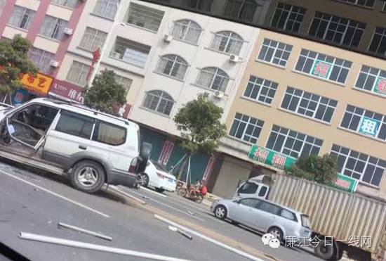 9月26日下午2点30分,据网友爆料称,在廉江大道南(城南派出所入口)路段,,有些围栏碎片甚至飞出30米外。轿车的受损严重,事故造成一男司机受伤。具体事故原因交警部门正在调查中。