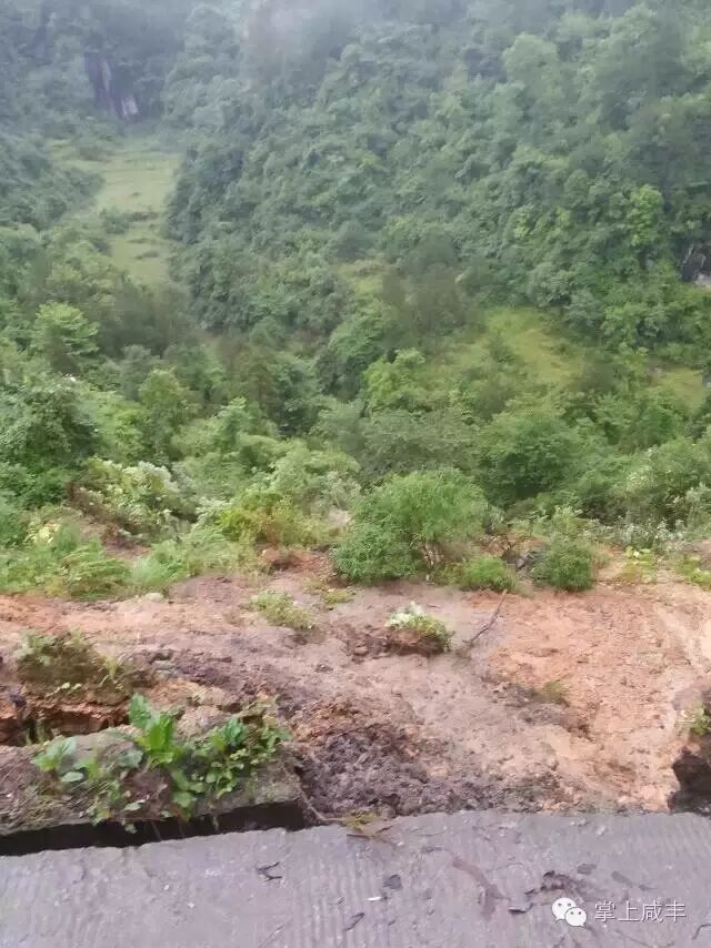 近日,咸丰连降暴雨,多处受灾,公路被毁,山体垮塌。小编在此提醒广大网友,出行请一定注意安全。积极开展生产自救,重建美好家园。