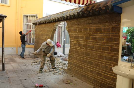 据了解,州水利局小区的部分住宅楼因“临街”,临街的住宅楼房几乎都改成了“商用”,众多生意人也租起了楼房用于经营。但是有些人就打起了占用绿化带扩大经营的主意。这不,一家食馆在绿化带上搭建起了厨房,而另一家根本就没有经营的房屋,完全只用绿化带来经营。一家卖鱼头火锅的干脆把房屋的外墙颜色改变,把小区的护栏都给换了,这与整个小区的整体业态实在是不相符。