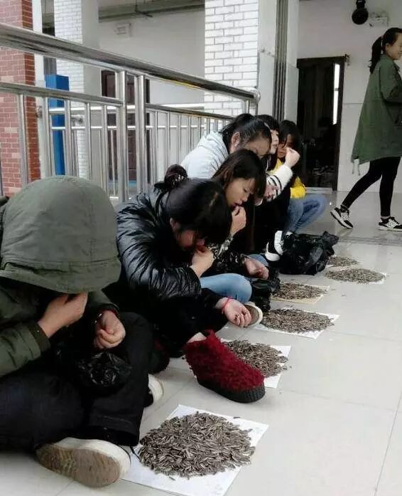 学生课上嗑瓜子,老师买了100斤瓜子让他们磕个够!