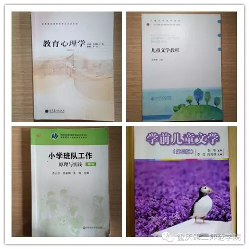 好多以往没有接触的学科,各科专业课程。《学前儿童文学》、《儿童心理学》、《小学班队工作》《教育心理学》等等。我们在枯燥的理论学习中,寻求欢乐,和老师一起探讨,学做一名合格的教师。