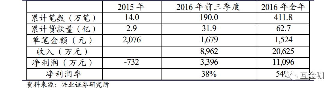 其中,2016 年二三四五贷款王累计贷款量 62.7 亿,较 2016 年三季度末 31.9 亿的贷款量有一倍的增长,环比增速加快。同时,2016 年全年消费金融实现 1.11 亿净利润,较前三季度 3400万净利润有大幅提升,并且提升幅度远远快于贷款量的增长。