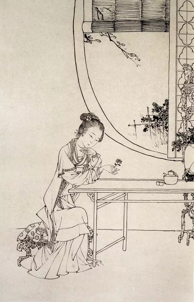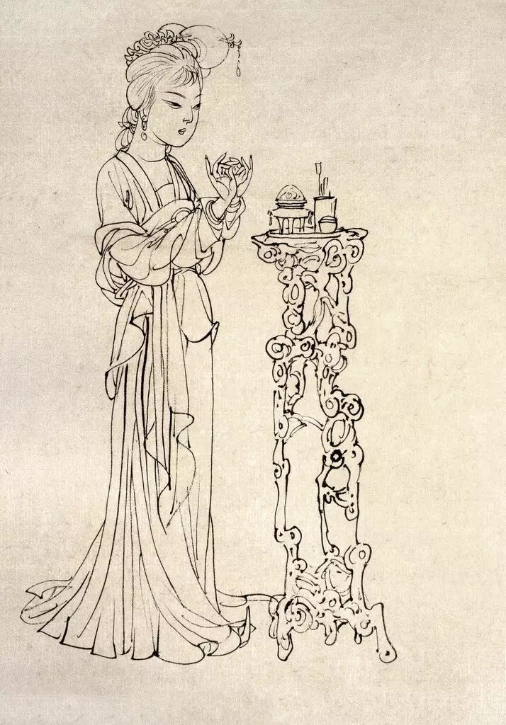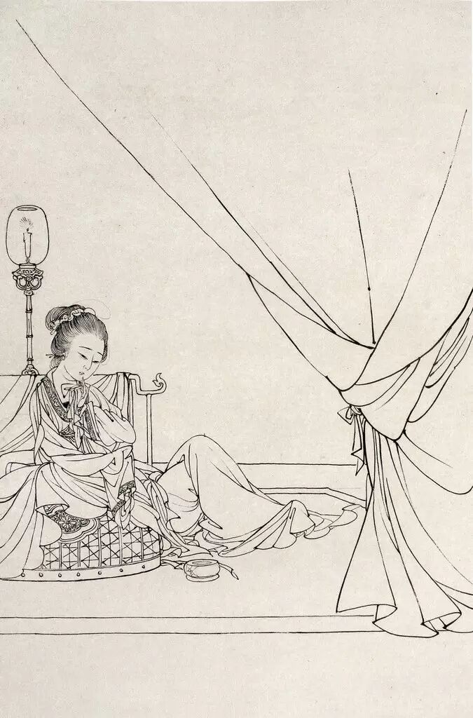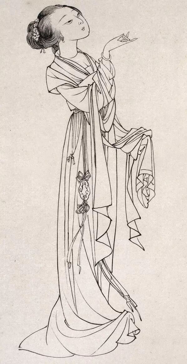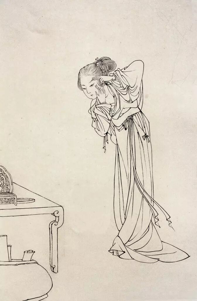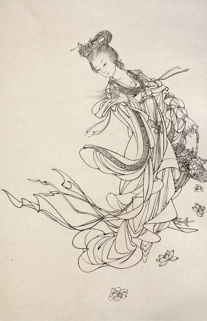 以线为表现手段的画法,依靠线本身的刚柔,粗细、巧拙,方圆,疏密等变化来表现各种物象。同时线条本身也具有一定的抽象审美效果。白描就整个中国画来讲也是一门独立的艺术,作为工笔白描,一般线形变化不大,细而均匀,为敷色留有余地。