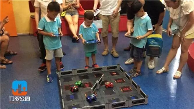 在智能玩具“银河战甲”竞技闯关比赛中,参赛小选手们为获得水晶石,纷纷拿出看家本领。你们看出哪位宝贝是冠军了?