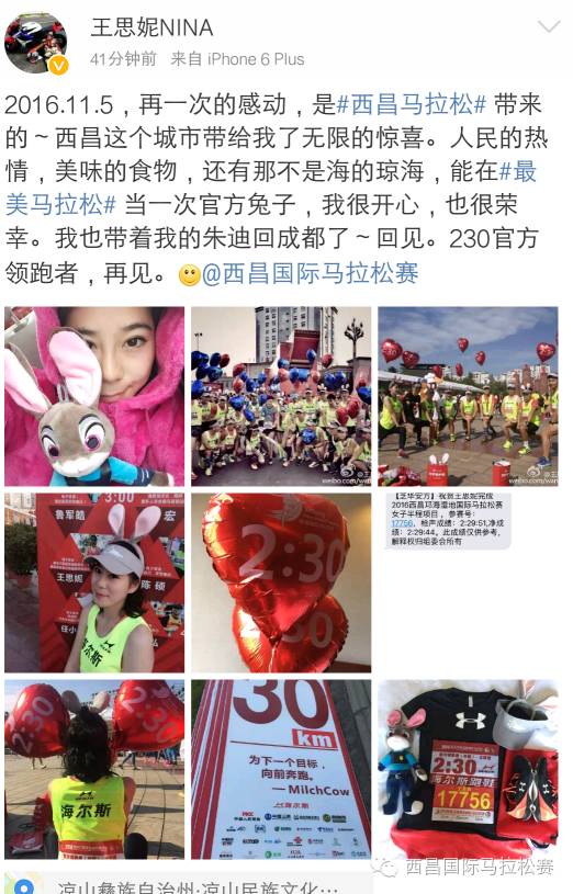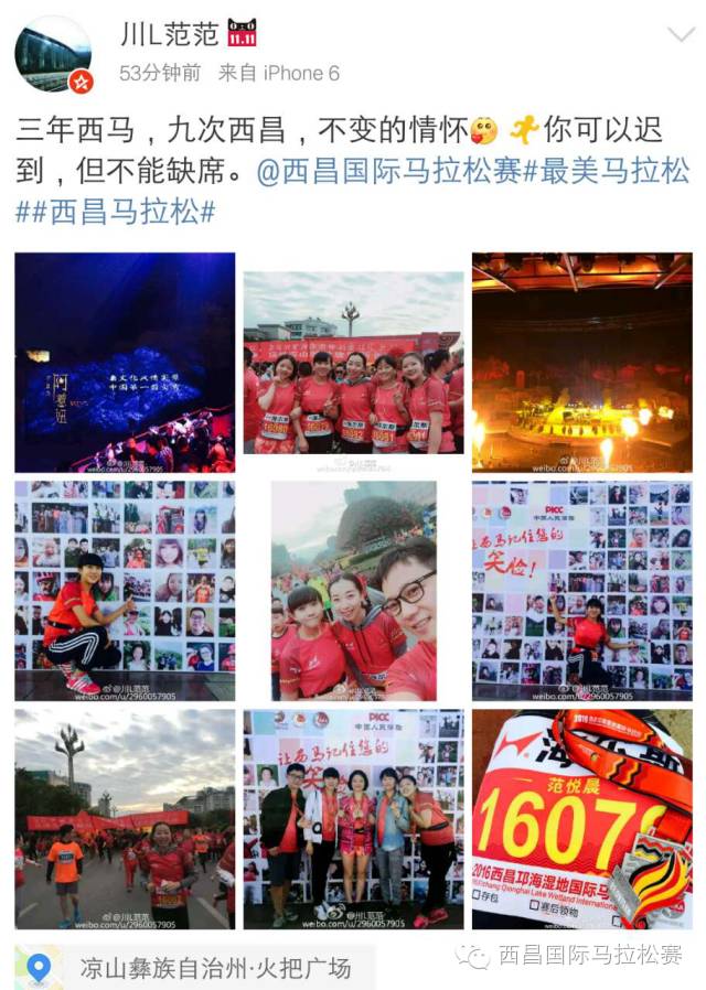 2016海尔斯·西昌邛海湿地国际马拉松赛圆满落下帷幕,欢快的主题曲还在我们耳畔萦绕,所有人的热情就像火把广场上点燃的火把熊熊燃烧,每一个动人的画面定格在西小马的脑海。我们为赛前领操员的活力和敬业而感动,当看到成2万余人伴着充满节奏感的音乐跟随领操员整齐地跳着热身操时,西小马也开始心跳加速,每一个细胞都在融入赛前充满活力的氛围中。我们为三位开场主持人的精彩演绎而感动,韩大叔和吉哈大叔的浑厚低沉的男中音把我们的西昌邛海马拉松讲成了一个美丽动听的故事,又帅又绅士的“灯王”高睿也用汉英双语征服了许多妹子的心。还有我们的王超和邓飞两位热场主持,从开赛到全马关门时间,两个人在主持台足足站着讲了6小时,专业的马拉松全程现场解说不断点燃现场气氛。我们为现场舞蹈演员的出色演出而感动,他们穿着华美的民族服饰为赛场装点上彝族新年欢庆的气氛,又在选手冲向终点时为他们加油打气,吹响独特悦耳的号角。我们为可爱的西马官方兔子们而感动,他们提前来到赛场,为了跑出标准的配速,踩点训练,在比赛中,即使扭伤了脚也坚持陪伴我们的参赛选手抵达终点,为了照顾身后的两百名选手,我们的关门兔子差点没赶上完赛时间……我们为背后默默付出,熬了许多个日日夜夜的工作人员和志愿者而感动,为了赛事的顺利进行,从安保,交通,医疗救助,到后勤保障,媒体宣传,每一个人都在尽自己最大的努力,即使流汗,即使精疲力竭,看着选手们的笑脸和对赛事的褒扬,我们内心真的是幸福的。然而,带给我们最多感动的还是你们,亲爱的参赛选手们,你们有的远道而来,有的几经周折,有的顽强坚持,有的助人为乐,有的活力满满,有的轻松欢乐。我们听到在终点等到顺利完赛的爸爸的小孩大声的说:爸爸,我爱你!