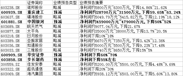 另外有15家次新股发布了业绩预减公告,其中重庆建工、中国银河、华安证券和步长制药净利润下降幅度均超过50%。
