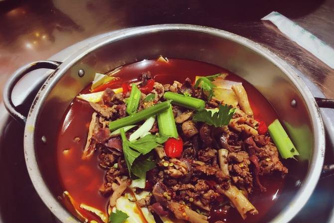 他家的鸡杂色香味俱全,分量超足,味道超赞,绝对的重庆味道!鸡杂一定要多煮一会儿,盐味辣味都煮进去了才好吃。里面的素菜和配料也是超zan!材料很新鲜,也是吃了一次就会爱上的味道!