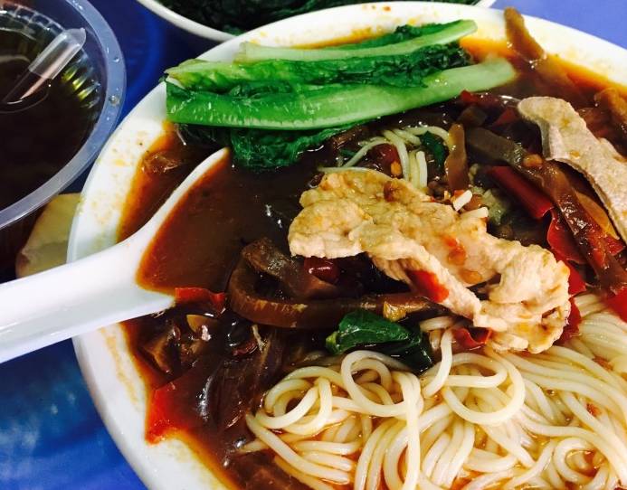 没有门面的街边摊,就是个塑料棚子搭起来的地方,没有名字,旁边都是卖菜卖杂货的。来吃饭的有打工者,也有住在附近的居民,还有就是像我们这样的好吃狗。八仙桌,条凳,塑料彩棚。还有条小土狗围到你桌子下头转悠。就是如此的生活,但却有意想不到的美味!